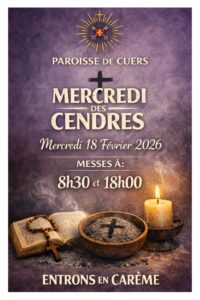 Mercredi 18 février, messes à 08h30 et à 18h00
